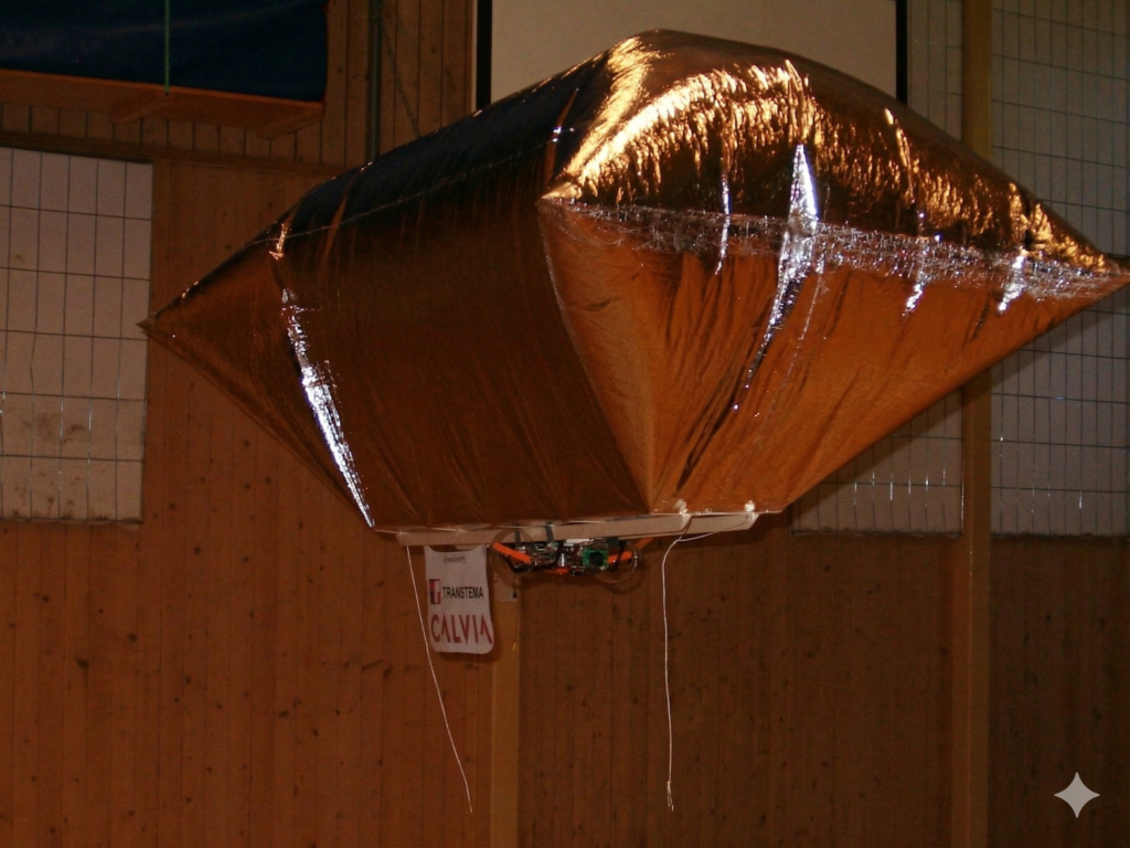 Beata was an autonomous blimp capable of indoor recognisance and precise aerial flight. It used an onboard flight computer capable of both autonomous and direct user input flight mode via a joystick. In autonomous mode it used ultra sonic beacons as a way to navigate along predefined waypoints. The mylar-balloon was handcrafted and the ballast was a stack of playing cards used balance the floating point. Since helium is notoriously difficult to contain, every now and then the stack of cards were used to rebalance it. Moreover, it also featured an onboard camera which would send images back to the control station.